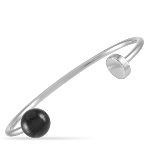 The Calvin Klein 'Bubbly' open bangle bracelet is made of stainless steel and embellished with an onyx. The bracelet measures 8.25” in length.This jewelry piece is offered in brand new condition and includes the manufacturer’s box and papers.