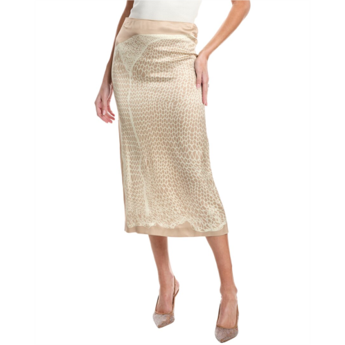 Introducing the Sportmax Ala Midi Skirt, a stunning addition to any woman's wardrobe. This beige skirt measures approximately 36 inches from waist to hem and features a flattering silhouette. The right side seam zipper closure adds a touch of sophistication, while the 97% Viscose and 3% Elastane blend ensures both comfort and style. Made in Italy, this midi skirt is dry clean only. The model is 5'10 and is wearing a size 4, with measurements that may vary slightly by size. Elevate your look with the Sportmax Ala Midi Skirt today.