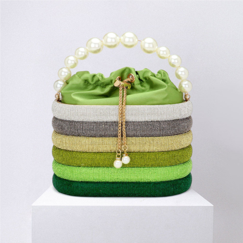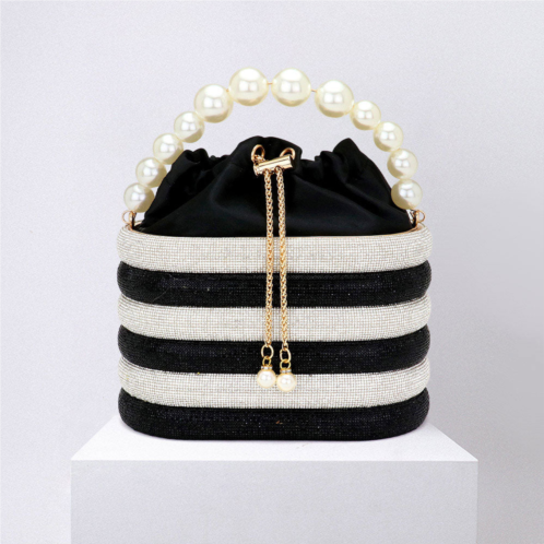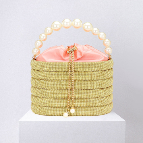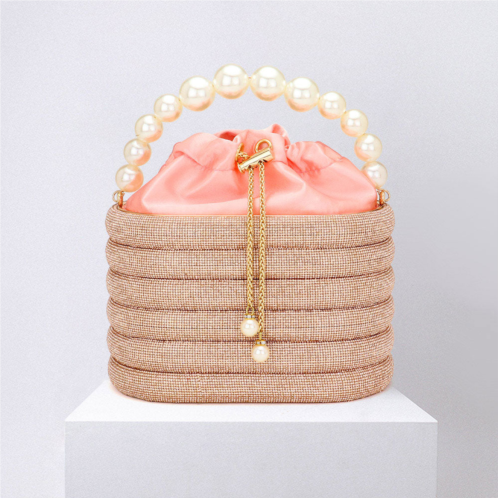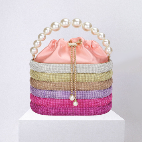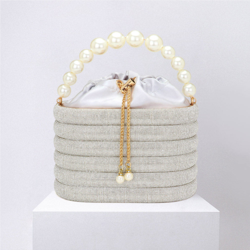 [US] FASHNZFAB bling pearl top handle drawstring box crossbody bag