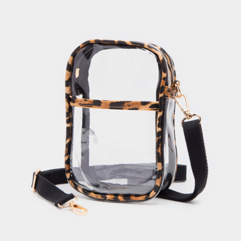[US] FASHNZFAB leopard patterned faux leather transparent rectangle crossbody bag