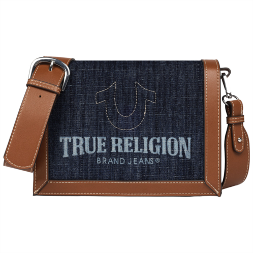 Carry your essentials in iconic style with the True Religion Multi-Compartment Denim Crossbody. Designed with rich dark denim, signature contrast stitching, and the bold True Religion logo, this bag combines everyday function with premium brand appeal. Multiple compartments and an adjustable strap make it perfect for on-the-go organization and comfort.-This True Religon bag is officially licensed. You are ensured to receive genuine and authentic merchandise.-17-20.5' adjustable removeable shoulder strap-Silver Hardware-magnetic snap closure-True Religion Signature polyester lining-Interior - Multiple compartments, with slip pockets, zip pockets -Material 50% polyester 50%Cotton-Dimension - 6.75H X 9W X 2D-Weight 1 lbs.-Imported