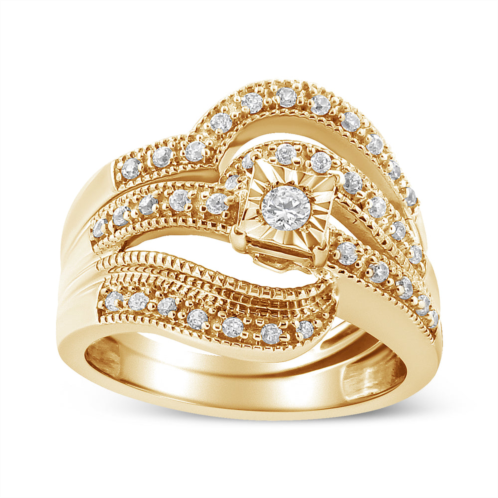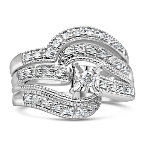 [US] Haus of Brilliance .925 sterling silver 1/3 cttw round diamond crisscross engagement ring bridal set