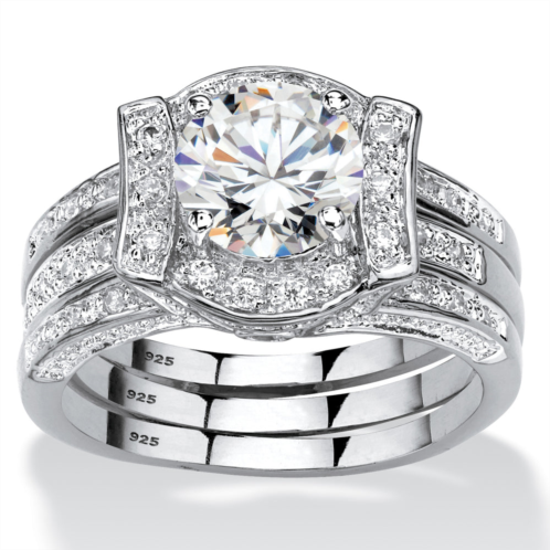 [US] Palm Beach Jewelry 2.37 cttw. cubic zirconia platinum-plated sterling silver jacket bridal ring set