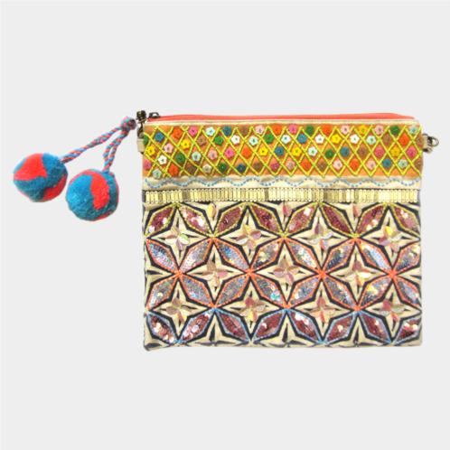 [US] FASHNZFAB floral boho sequin pom pom crossbody bag