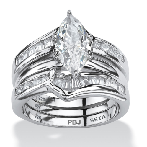 Contemporary marquise-cut cubic zirconia two-piece wedding ring set features a polished elegance and cz accents for 3.57 carats T.W. of fabulous sparkle. Sterling silver. Sizes 6-10.