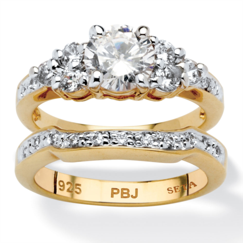 [US] Palm Beach Jewelry 2 piece 2.01 tcw round cubic zirconia bridal ring set in 18k gold-plated
