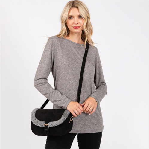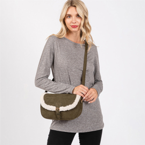 [US] FASHNZFAB fleece trimmed solid crossbody bag