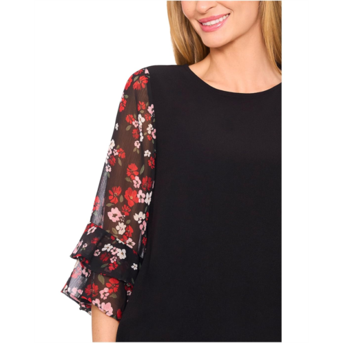 [US] Womens CeCe Double Ruffle Mixed Media Knit Top