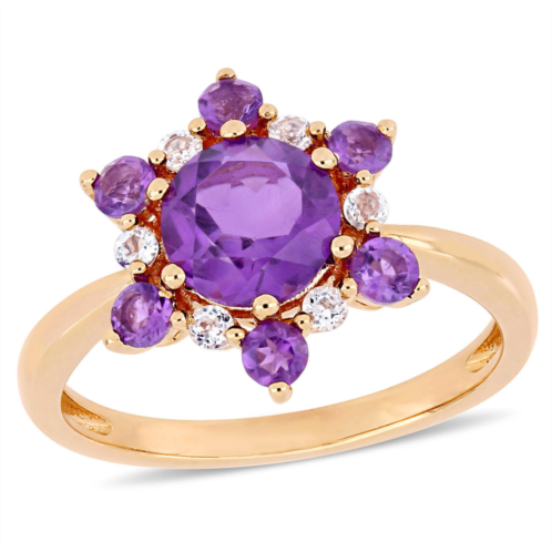 This trendsetting clustered star ring from the Mimi & Max Collection is crafted in 10-karat rose gold and features a round-cut African-amethyst at the center along with six smaller African-amethyst stones and six white topaz stones in a unique clustered star design. Instantly add a touch of color, sophistication and style to any ensemble with this stunning gemstone ring.