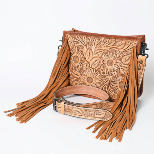 This crossbody bag will be your go-to bag of the season.Presenting the Women's Crossbody Purse Bag by American Darling, a luxurious accessory handcrafted in the heart of Texas. Constructed entirely from eco-friendly, genuine leather, this bag embodies a fusion of western culture with contemporary fashion. It features a convenient cross-body strap and is secured with a zipper closure, ensuring your essentials are safe. Dimensions - 10' width, 8' height, and 2' depth.
