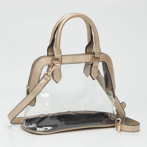[US] FASHNZFAB faux leather trim transparent structured top handle handbag / crossbody bag