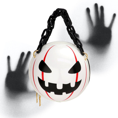 Bag Size - 6' X 6Top Handle Size - 5' LChain Strap Size - 48' L, DetachableNo Inside PocketZipper ClosureAdd a spooky twist to your outfit with this round Halloween-themed handbag featuring a bold face design and chunky chain handle. Ideal for costume parties, trick-or-treating, or festive accessorizing.