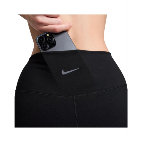 - Up for a workout or down to chill, the Nike Dri-fit One High-waisted Capri Leggings are the ones that are ready for whatever you are. Their midweight, peachy-soft fabric stretches with your every move and dries quickly. Plus, non-sheer fabric and a high waist is designed to meet your favorite cropped tops for a head-to-toe look that you can feel confident and comfortable in all day long. Fewer seams make for a smooth, flattering fit. A drop-in pocket in the back of the waistband is large enough to hold your smartphone and the reflective Nike swoosh logo on the back adds an authentic touch. The cropped-leg silhouette adds a fine touch of style to your look and is intended to hit slightly below the knees.