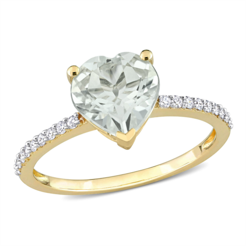[US] Mimi & Max 1 5/8ct tgw heart green quartz 1/7ct tdw diamond ring 14k yellow gold