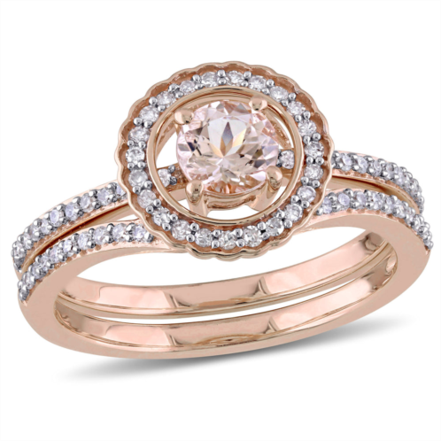 [US] Mimi & Max morganite and 1/3ct tw diamond halo bridal ring set 10k rose gold