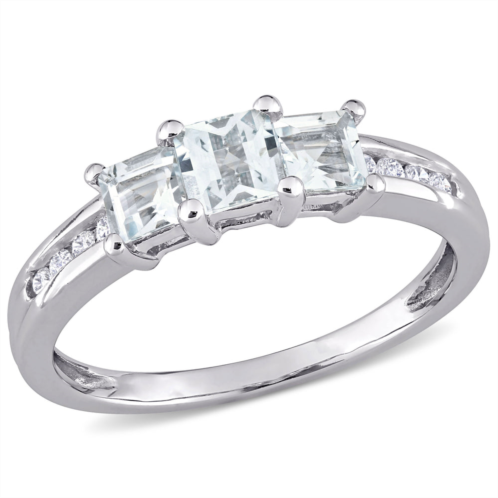 [US] Mimi & Max square shaped aquamarine 3-stone ring with 1/10ct tw diamonds 10k white gold