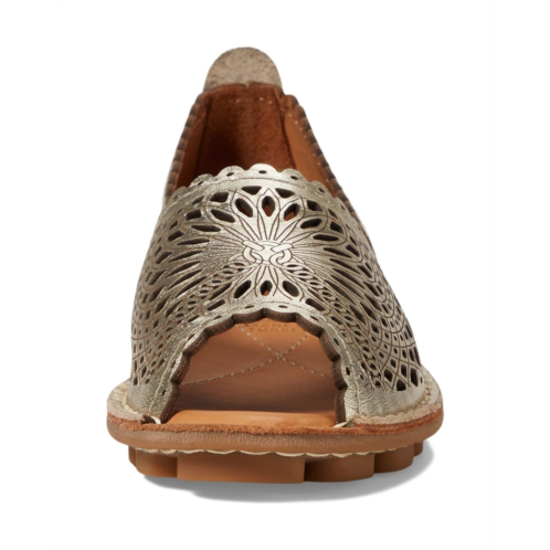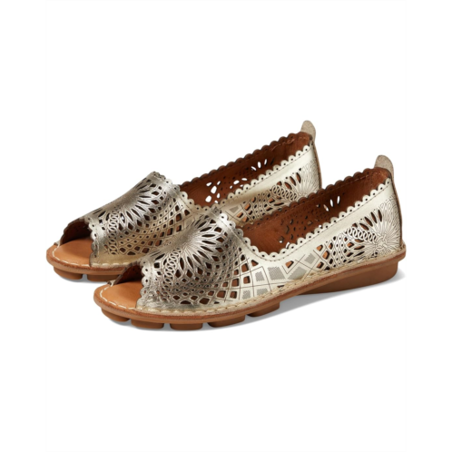 - Bring elegance to your look and comfort to your feet by wearing the Spring Step Brandal footwear. The low-top slip-on style sandals have a peep round toe design, heel pull-on tab for easy donning and doffing, and a slight heel. The sandals have a beautiful scalloped leather upper construction, padded leather insole, and leather lining for a prolonged wearing experience. The cutout detailing helps increase breathability and flexibility.