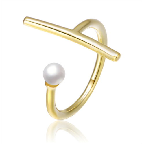 [US] Rachel Glauber 14k gold plated pearl assymetrical open ring