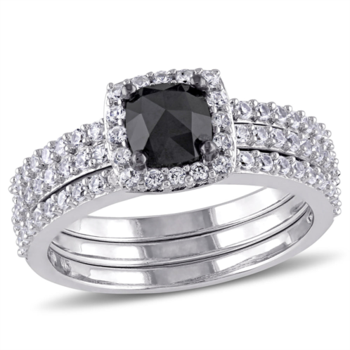 [US] Mimi & Max 3/4ct tw black cushion cut diamond created white sapphire bridal set 10k white gold