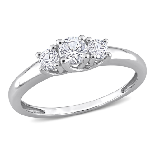 Embrace the brilliance of this stunning Mimi & Max created white sapphire 3-stone engagement ring, set in 10k white gold. The three captivating white sapphires symbolize your past, present, and future together, making this ring a meaningful and romantic choice. With its classic design and dazzling stones, this ring will be cherished for a lifetime.