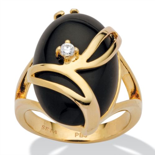 [US] Palm Beach Jewelry oval-shaped onyx and crystal accent cocktail ring in gold-plated