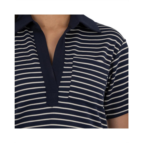 - Showcase your chic yet sporty style wearing KUT from the Kloth Daphne Short Sleeve Fold Dress. It features a collared V-neckline, short sleeves, and an allover stripe print pattern.