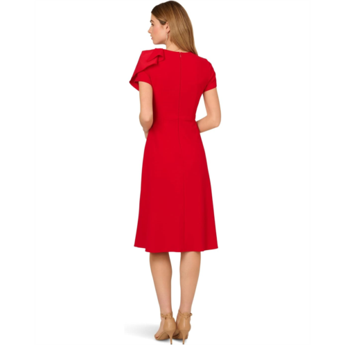 - The Adrianna Papell Ruffle Bodice Midi Dress is a stretch crepe short-sleeve A-line dress that is perfect for baby showers, dinners, weddings, and other special occasions. This midi dress is styled with a crew neckline, front slit, and a straight hem. Its zippered side closure offers easy wear, while the blouson silhouette provides a flattering fit. Make a stylish entry into any party or event wearing this chic dress.