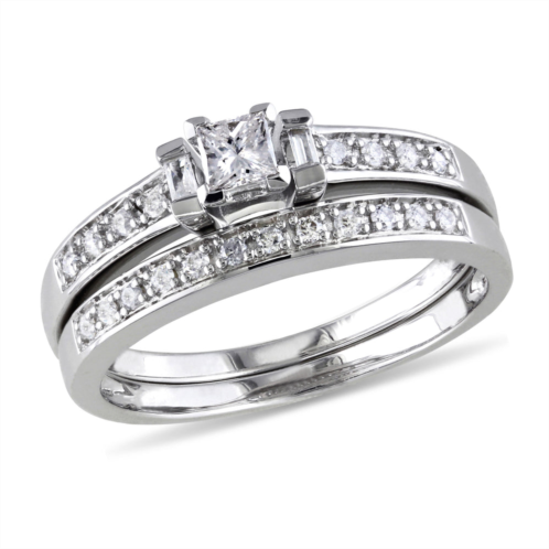 [US] Mimi & Max 1/3ct tw princess cut baguettes round diamond bridal set sterling silver