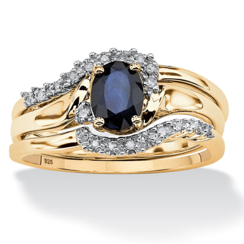 [US] Palm Beach Jewelry 1.05 tcw 3 piece oval-cut midnight sapphire ring set in 18k gold-plated silver