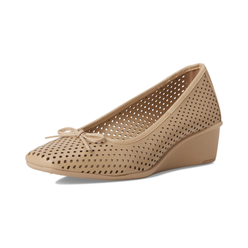 Step out with a marvelous yet chic flair wearing the Anne Klein Winslet. The slip-on footwear features polyurethane upper with allover breathable perforations and sleek wedge heel.