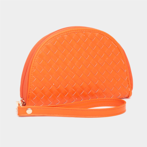 [US] FASHNZFAB faux leather basket weave half moon shaped wristlet wallet