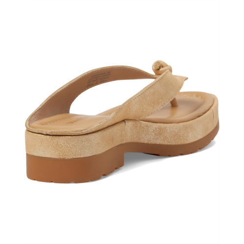 Add some height to your stride. wearing the Donald Pliner Seena. Crafted from leather upper, leather lining and insole, this pair of sandals features open round toe, extended upper straps, toe post with knot detail, memory foam sock lining and brand detailing on the footbed. It comes with low block heel.