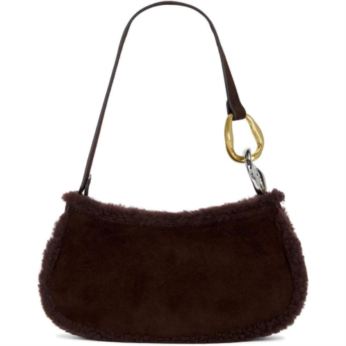 [US] Staud womens ollie suede fur trim shoulder bag black