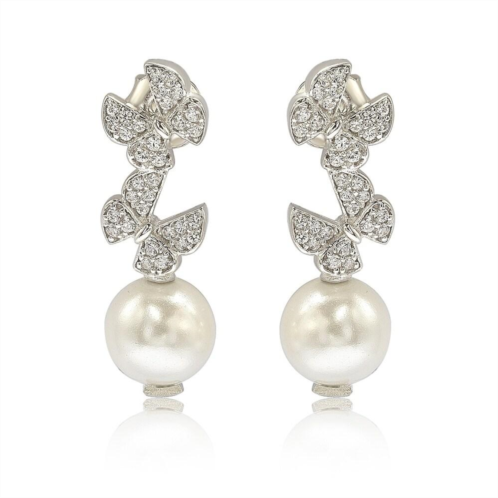 [US] Suzy Levian sterling silver pearl and white sapphire butterfly earrings