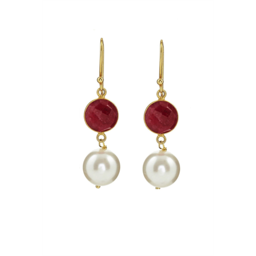[US] Liv Oliver 18k gold plated ruby & pearl drop earrings