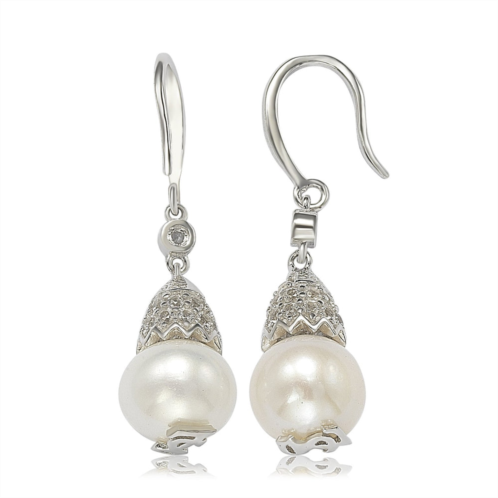 [US] Suzy Levian sterling silver pearl & white sapphire hook earrings