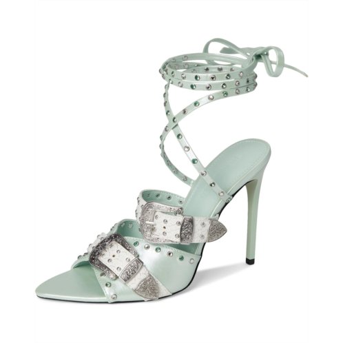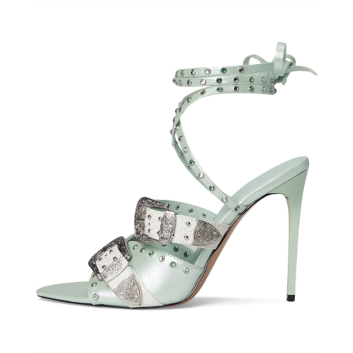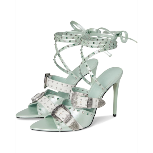 Introducing the Saddle heeled sandals, exclusively from Steve Madden. It is crafted with studded metal buckle detailing and ankle-wrap tie closure, blending edgy western flair with high-fashion polish. The polyurethane upper and nylon lining, and insole ensure lasting comfort.