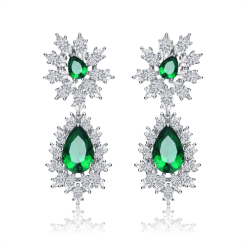 [US] Genevive sterling silver rhodium plated sapphire cubic zirconia drop butterfly earrings