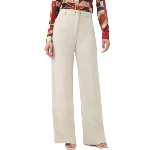 Elevate your casual wardrobe with the Trina Turk Kahina Pant. This wide-leg pant in Sahara Stone features side slash pockets, a zip closure, hook and zip front, and has an inseam of approximately 32'. Crafted from a blend of 89% Viscose and 11% Nylon, this pant is not only stylish but also comfortable to wear. Whether you dress it up or down, the Kahina Pant is perfect for any occasion. Trina Turk is known for its contemporary and colorful designs, drawing inspiration from California's multicultural mix. Hand wash or dry clean, this pant is proudly made in the USA. Measurements are taken from a size small and may vary slightly by size. Add the Trina Turk Kahina Pant to your wardrobe today for a versatile and chic look.