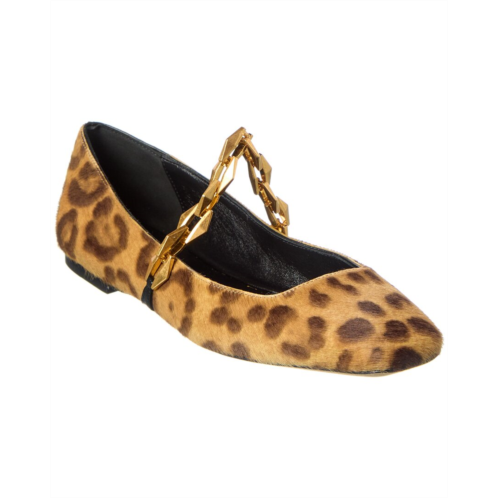 Elevate your shoe collection with the Jimmy Choo Diamond Tilda Haircalf Flat. This luxurious flat is crafted in Italy with natural printed haircalf and adorned with gold-tone hardware and a chic chain accent. The insole is lightly padded for added comfort, while the smooth leather sole ensures durability. Jimmy Choo, born in London in the early 90's, is a premier luxury brand known for bringing shoes and handbags to the red carpet. With a playful sense of glamour and exceptional Italian craftsmanship, Jimmy Choo stands out in Hollywood and beyond. Please note that size selections are European, so be sure to reference the size chart for US conversions. It's recommended to size up a half size for most styles, as this brand typically runs small. Rest assured, our products are 100% genuine and sourced from trusted independent suppliers. Experience the sophistication and style of Jimmy Choo with the Diamond Tilda Haircalf Flat.