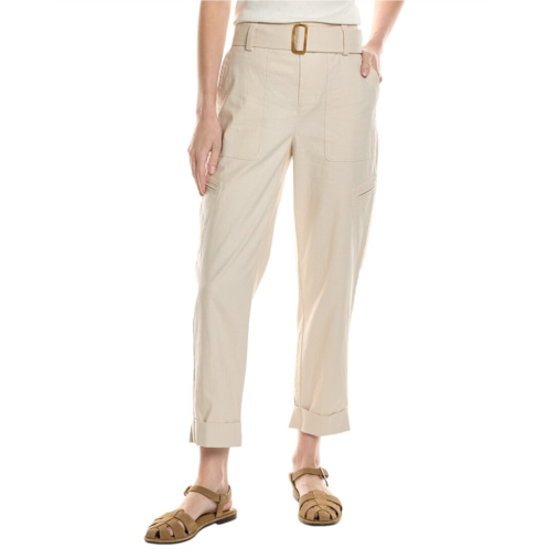 Add a touch of laid-back elegance to your wardrobe with the Vince Belted Linen-Blend Pant in Light Oat. Featuring a relaxed fit, elastic waist, removable belt, and side cargo pockets, these pants are both stylish and functional. Made with a blend of linen, viscose, and spandex, these pants are comfortable and versatile. Pair them with a knit top for a casual look or dress them up with a tailored blouse. Elevate your everyday style with these timeless essentials from Vince.