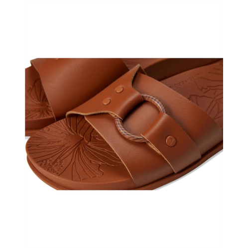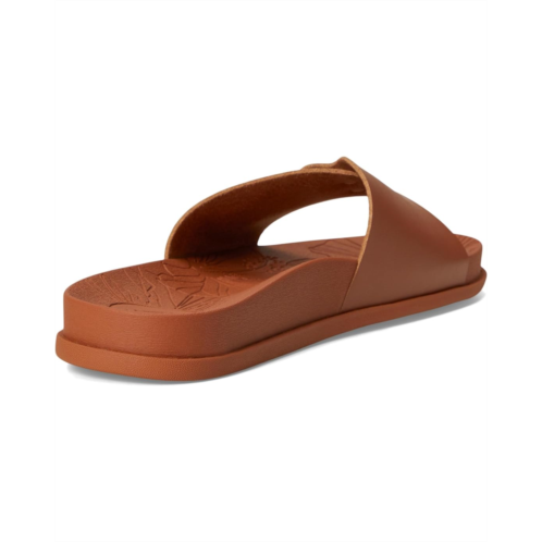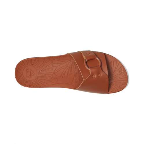 Chic, comfy, and ready to travel. An elevated take on a classic slide, the Reef Cushion Soho Cruz is perfect for dressing up or styling down on your next sunny outing. It's crafted with soft vegan leather, a rubber outsole, and generous arch support to keep you comfortable from vacation to city exploration. The Cushion Soho Cruz is ready for any adventure. Soft and supportive cushion with a rebound footbed with a hibiscus flower footbed design deboss. Super soft unlined PVC Free vegan leather slide with faux raffia molded buckle and recycled hardware detail.