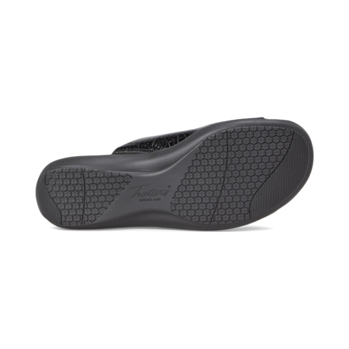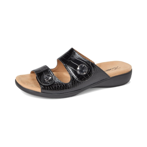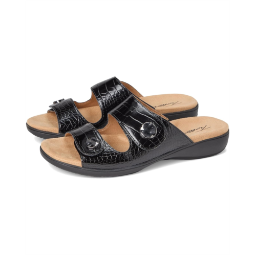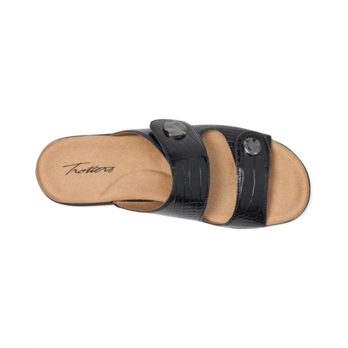 The Ruthie Croco Sandal combines the timeless charm of the Trotters Ruthie with modern touches, making it a must-have for any fashion-forward individual. Crafted from a synthetic upper, these shoes feature a dual hook-and-loop strap closure with elastic goring, round open toe silhouette, croc pattern detailing, and a soft velvet lining.
