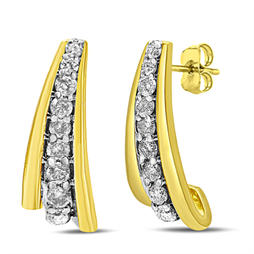 The refined sense of elegance displayed in these diamond huggie earrings is marvelous. Sparkling with a total 0.50 cttw round diamonds with an approximate I-J color and I2-I3 clarity, the diamonds are featured in a graduated ascent of smallest to largest. The earrings are crafted of 10k yellow gold flash plated .925 sterling silver. The push back findings keep these pierced earrings safe and secure on your ears for comfortable wear all day long.