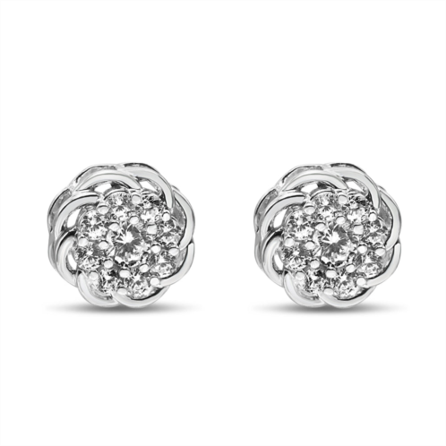 [US] Haus of Brilliance .925 sterling silver 1/2 cttw round diamond cluster openwork floral halo stud earrings