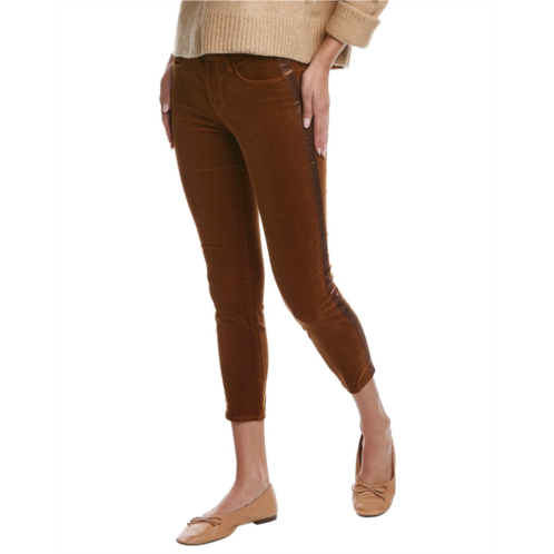 Elevate your denim game with the L'AGENCE Margot High-Rise Java Skinny Jean. Designed with a flattering high-rise fit and a rich Java color, these skinny jeans are a versatile wardrobe staple. The inseam measures approximately 26 inches, with a front rise of 9.5 inches and a back rise of 13.5 inches. The leg opening has an approximate 11-inch circumference, creating a sleek silhouette. Crafted from a luxurious velour fabrication with satin trim, these jeans feature classic five-pocket styling and belt loops for added convenience. The zip fly with button closure ensures a secure fit. Made in the USA, these jeans are constructed from 65% cotton, 33% rayon, and 2% spandex for a comfortable stretch. The lining consists of 65% polyester and 35% cotton for added durability. Make a statement in the L'AGENCE Margot High-Rise Java Skinny Jean, perfect for dressing up or down for any occasion. Model is 5'10 and is wearing a size 26. Measurements may vary slightly by size.
