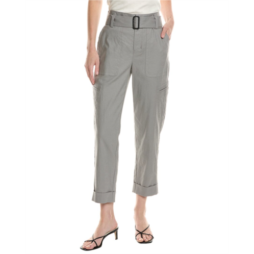 Elevate your casual wardrobe with the Vince Belted Linen-Blend Pant in light grey. Crafted from a luxurious linen blend, these pants feature an elastic waist for comfort, a removable belt for a personalized fit, and four-pocket styling for added functionality. With side cargo pockets and rolled cuffs, these pants offer a modern twist on a classic silhouette. The inseam measures approximately 27 inches with an 11-inch rise, while the zip fly with button and slide tab closure ensures a secure fit. Made from 53% linen, 44% viscose, and 3% spandex, these pants are easy to care for with a simple machine wash. Imported from California, Vince is known for its laid-back staples and timeless designs. Embrace the casual cool vibes of Vince with these belted linen-blend pants for a versatile and stylish addition to your wardrobe.