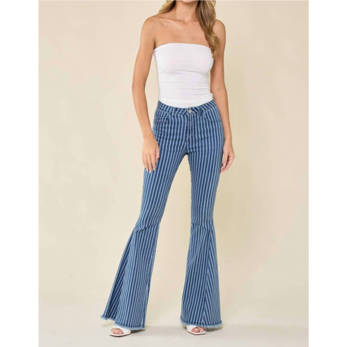 [US] WISTERIA LANE striped stretchy bellbottom jeans in blue cream
