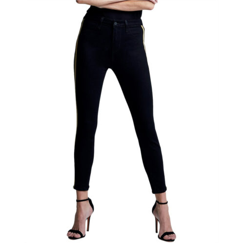 Introducing the 'L'AGENCE Margot High-Rise Skinny Jean' in Noir. These stylish jeans feature a contrast stripe down the leg, dual back pockets, and belt loops for a trendy look. The inseam is approximately 26 inches with a 9.5-inch rise, making them a flattering choice for any body type. Made with 73% cotton, 25% Repreve polyester, and 2% spandex, these jeans are not only fashionable but also comfortable to wear. The zip fly with button closure adds convenience, and the fact that they are dry clean only ensures their longevity. Designed and made in the USA, these L'AGENCE jeans are a quality addition to your wardrobe.