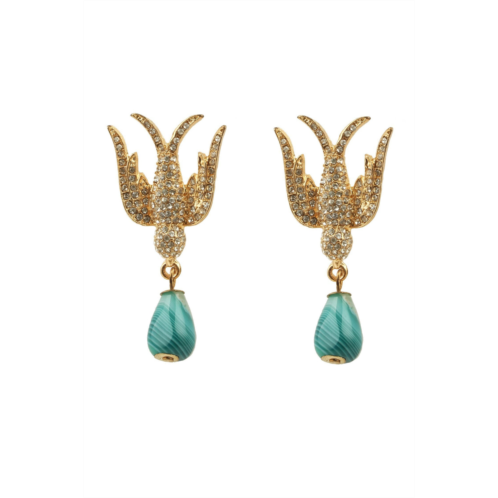 These flying bird earrings are ready for fly south for the winter. This peaceful set of dove earrings features a blue crystal drop.